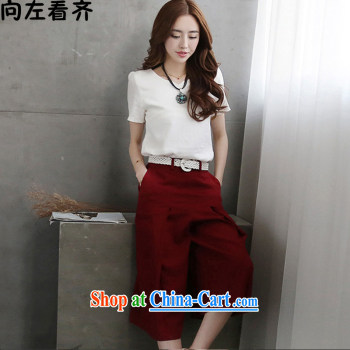 keyword: Left align the payment 2015 new female summer trendy, cotton Ma meter wide leg trousers + cotton Ma T-shirt two-piece lounge suite the Red Cross on the white M, left, line, and shopping on the Internet